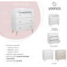 W zależności od potrzeb, możesz wybrać komodę z 3 lub 4 szufladami – każda z nich została wyposażona w prowadnice z funkcją cichego domyku (soft-close), co zapobiega trzaskaniu i przypadkowemu obudzeniu śpiącego niemowlęcia. Dodatkowa nakładka na przewijak pozwala stworzyć bezpieczne miejsce do codziennej pielęgnacji. Po jej zdjęciu komoda zyskuje uniwersalne zastosowanie, dzięki czemu będzie służyć przez lata.