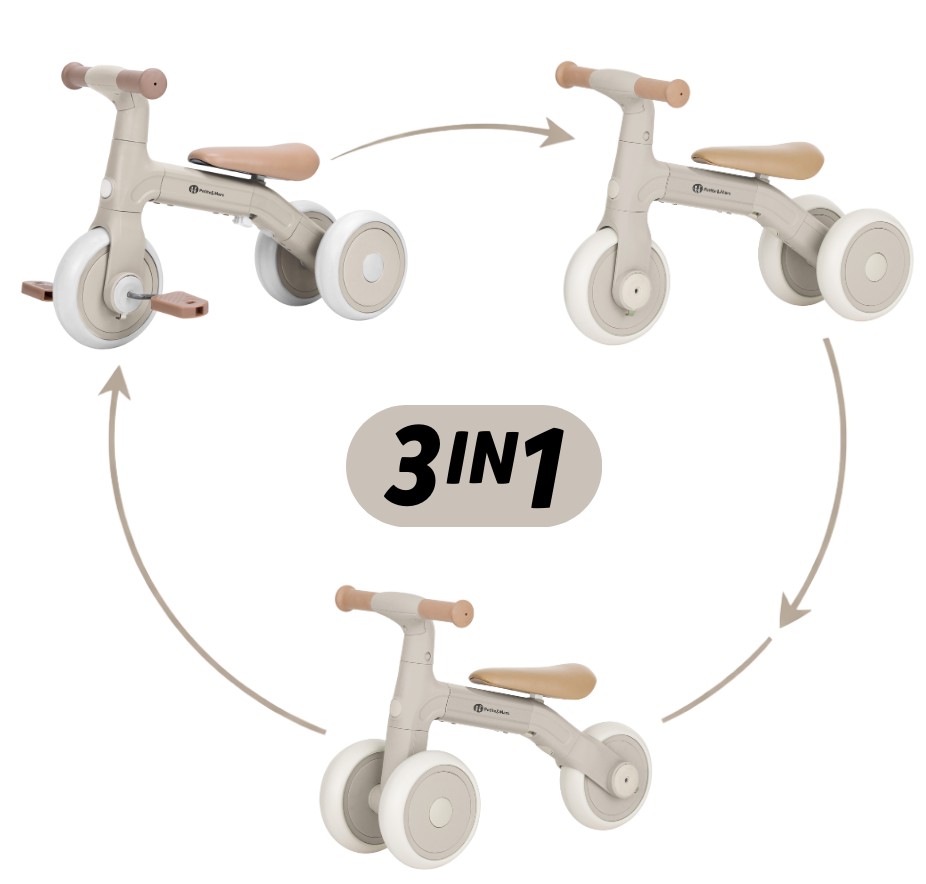 • 3 tryby jazdy: trójkołowiec / rowerek biegowy / rowerek z pedałami