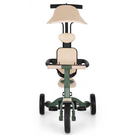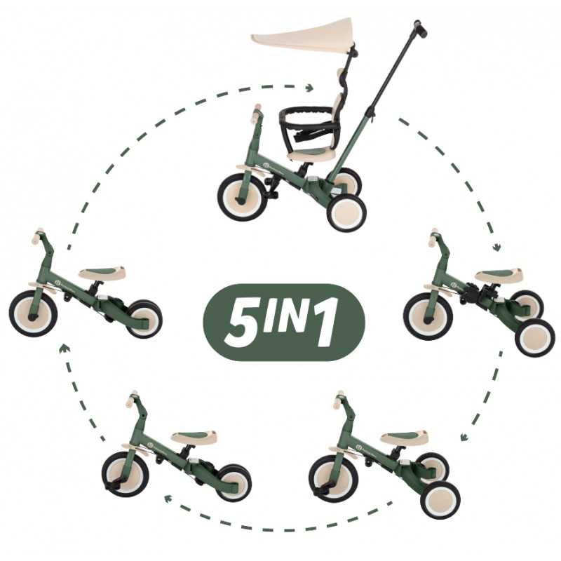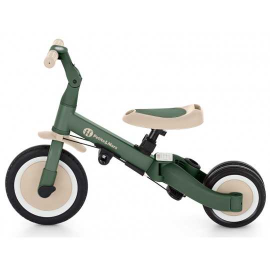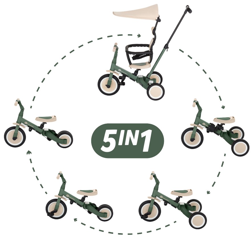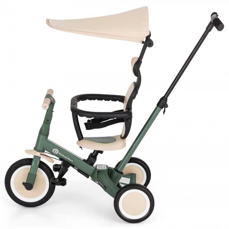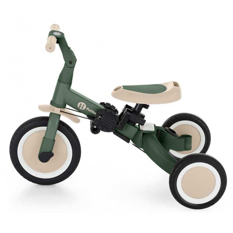 Kierownica z antypoślizgowymi gumowymi uchwytami jest regulowana, pedały można zdejmować, a siodełko dopasowuje się do wzrostu, zapewniając jednocześnie maksimum bezpieczeństwa dzięki dokładanym pasom bezpieczeństwa. Wytrzymałe koła, sprawiają, że rowerek doskonale sprawdza się zarówno w wersji dwu- jaki i trójkołowej, gwarantując stabilność na różnych nawierzchniach. Prosty system przekształcania z jednego trybu na kolejny nie wymaga narzędzi, umożliwia szybką adaptację do wieku i umiejętności dziecka. Mimo swojej rozbudowanej funkcjonalności, pozostaje lekki i praktyczny, ważąc zaledwie 5,6 kilograma i mając kompaktowe wymiary: 67 cm długości, 46 cm szerokości w wersji trójkołowej oraz regulowaną wysokość siodełka od 31 do 37 cm.