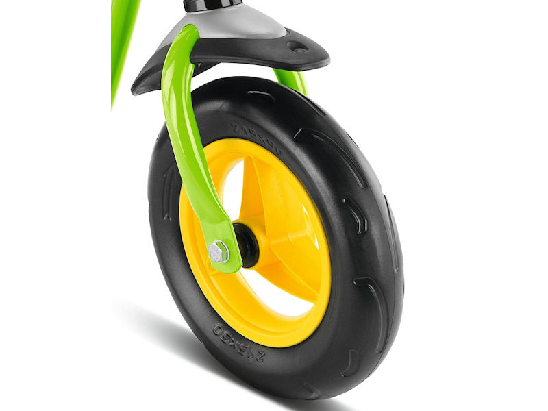 Rowerek wyposażony jest w koła 215x50. Miękkie, piankowe opony świetnie sprawdzają się zarówno w domu jak i na zewnątrz. Nie rysują podłogi, nie ślizgają się na mokrej nawierzchni. Zapewniają komfortową i cichą jazdę, Są bezobsługowe. Uszczelnione łożyska kulkowe w kołach zapewniają długi i bezawaryjny okres użytkowania. Rowerek wyposażony jest w błotniki.