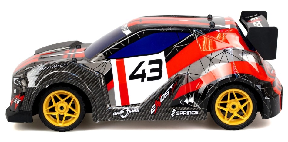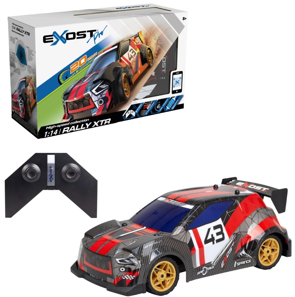 Ścigaj się jak profesjonalista! Wyścigówka Rally XTR z serii PRO to powiew szybkości w świecie zdalnie sterowanych pojazdów EXOST. Samochód jeździ we wszystkich kierunkach, a kieruje się nim za pomocą dołączonego do zestawu pilota. Dzięki dynamicznemu sterowaniu bez trudu rozpędzisz autko nawet do 20km/h i to tylko w 5 sekund! Pojazd wyposażony został w wytrzymałe opony i silnik o wysokiej wydajności, aby zabawka mogła służyć jak najdłużej. Produkt przeznaczony jest dla dzieci od 8 roku życia.