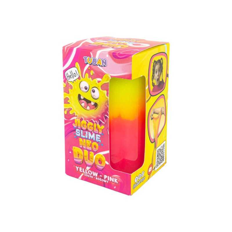 Jiggly Slime Neo Duo oferuje wyjątkową konsystencję, którą można ugniatać, rozciągać i formować, słysząc przy tym przyjemne, relaksujące odgłosy podczas zabawy.