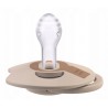 Dynamiczny smoczek uspakajający nie zaburza odruchu ssania dziecka oraz prawidłowego rozwoju mowy i zgryzu. Kształt gumki jest symetryczny i inspirowany kształtem brodawki sutkowej, by zapewnić dziecku znajome odczucia. Gumka smoczka jest spłaszczona, a szyjka gumki cienka, by dziecko podczas ssania smoczka miało odpowiednią ilość miejsca w buzi na pracę języka i mogło jak najbardziej domknąć usta. Profilowana tarczka z wycięciem ułatwia oddychanie noskiem i przełykanie śliny podobnie jak przy piersi. Delikatny silikon w smoczku jest neutralnym materiałem, który nie uczula dziecka.