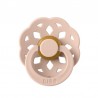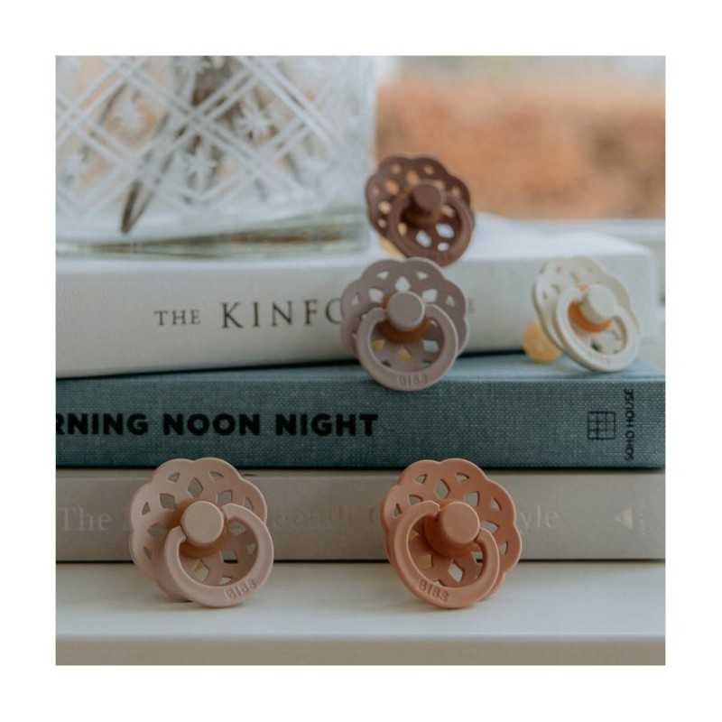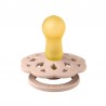 Smoczek uspokajający w rozmiarze M z organicznego kauczuku naturalnego odpowiedni dla Niemowląt od 6 do 18 m-ca życia. Kauczuk jest obecnie najczęściej wybieranym przez Mamy materiałem z którego produkowane są smoczki dla dzieci. Smoczki BIBS BOHEME są miękkie i elastyczne, dzięki czemu dziecko przy odpowiedniej wentylacji podczas ssania czuje jakby ssało pierś Mamy. Osłonka została wyprofilowana tak aby nie dotykać do ust i brody Maluszka zapobiegając tym samym zaczerwienieniom, krostkom, wykwitom, wyprzeniom bakteryjnym czy poważniejszym zakażeniom skóry. Osłona dodatkowo posiada otworki dzięki czemu Maluszek łatwo oddycha trzymając smoczek w buzi. Każdy z elementów smoczka został zaprojektowany przy współpracy z neonantologami, dzięki temu uzyskano pełną ergonomię anatomiczną odpowiednią dla danego wieku rozwojowego Maluszka. Smoczki uspokająjące wykonane z organicznego kauczuku mogą być stosowane u dzieci od pierwszego dnia życia.