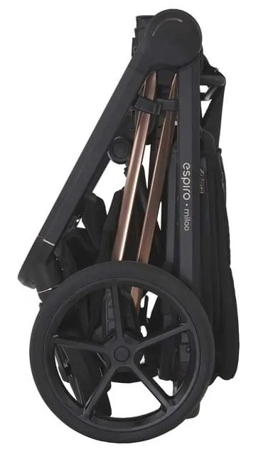 Spacerówkę espiro miloo way złożysz za pomocą jednej ręki – umożliwia to system lift and go. Złożony wózek ma kompaktowe rozmiary, co docenią rodzice, którzy będą często transportować go w bagażniku samochodowym. Oprócz tego funkcjonalna konstrukcja espiro miloo way daje możliwość wpięcia spacerówki tyłem lub przodem do kierunku jazdy – by przywiązany do rodzica maluch nie tracił kontaktu wzrokowego z mamą lub tatą