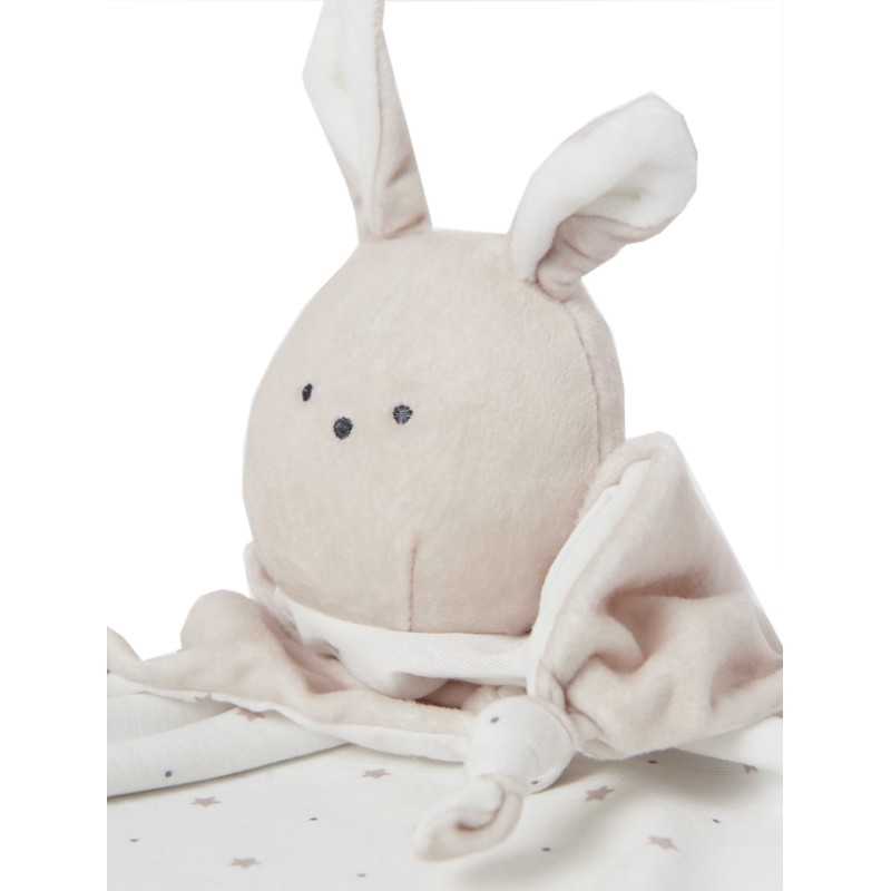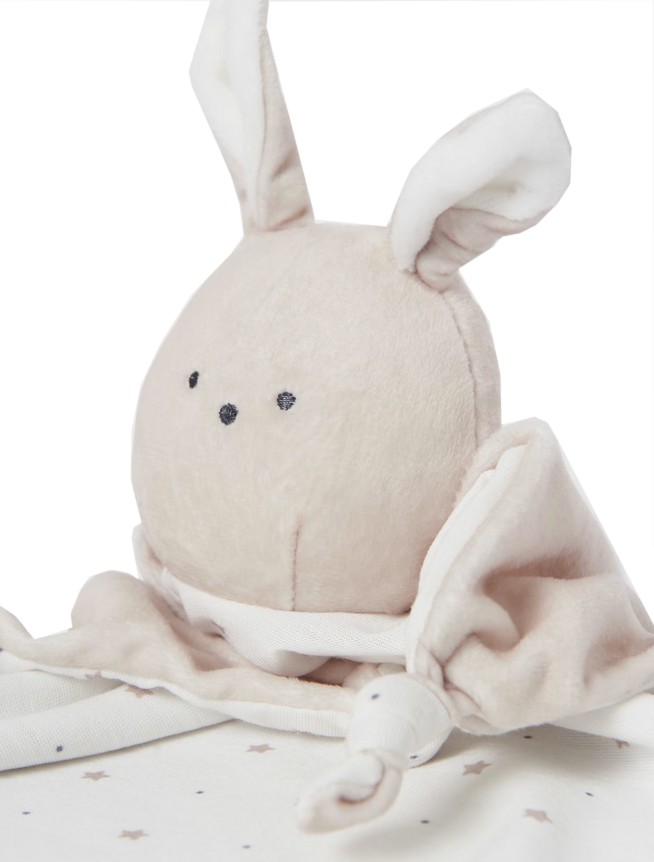 Słodki pluszak dla dziecka połączony z delikatnym kocykiem. Będą stanowiły doskonałe towarzystwo Twojego dziecka w chwilach zabawy i odpoczynku. Artykuł ten jest pakowany w pudełeczko z linii Newborn, idealnie pasujące na specjalne okazje. Wszyty uchwyt na smoczek.