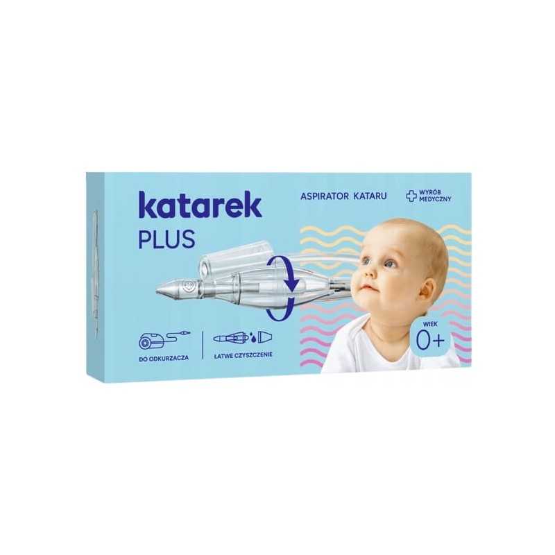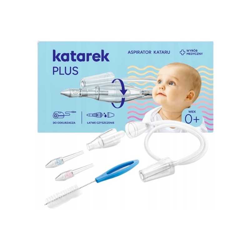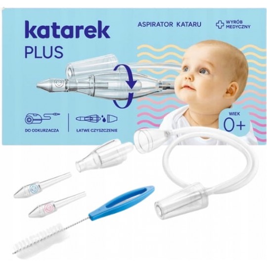 Aspirator Katarek Plus podłączany jest do domowego odkurzacza o mocy 800–1800 W. Zredukowana, jednostajna siła ssąca sprawia, iż jest on znacznie skuteczniejszy niż ustne aspiratory, które usuwają jedynie ¼ wydzieliny, nie wspominając już o tradycyjnych gruszkach.Dzięki aspiratorowi Katarek Plus skutecznie i szybko pozbędziesz się wydzieliny z noska malca, przynosząc mu natychmiastową ulgę. Cały proces odciągania wydzieliny jest całkowicie bezpieczny dla każdego dziecka, już od pierwszego dnia życia. Rozkręcana komora aspiratora Katarek Plus ułatwia utrzymanie aspiratora w czystości, ergonomiczny kształt wpływa na zwiększenie komfortu podczas jego użytkowania, zaś długi wężyk gwarantuje swobodę ruchów. Produkt posiada instrukcję obsługi i etykietę w języku polskim oraz symbol CE, który oznacza, że oznakowany wyrób spełnia wymagania dyrektyw unie europejskiej.