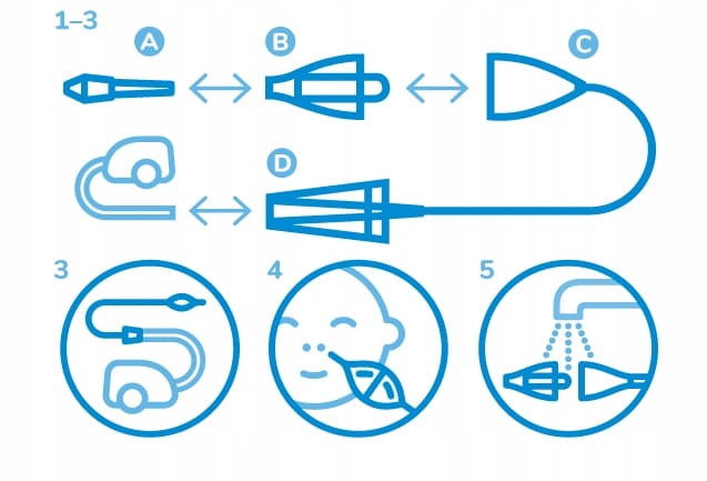 Odciąganie – ma na celu usunięcie rozrzedzonej wcześniej wydzieliny z nosa dziecka.Odciąganie to moment kluczowy w oczyszczaniu nosa u dziecka. Właśnie ten etap odpowiada za prawidłowe i skuteczne udrożnienie dróg oddechowych. W celu przeprowadzanie procesu efektywnie i w pełni bezpiecznie, należy użyć aspiratora marki Katarek, wchodzącego w zestaw do Metody 3 Kroków – Katarek Plus. Wykorzystując siłę ssącą odkurzacza, aspirator umożliwia jednostajne i szybkie usunięcie wydzieliny, przy zachowaniu pełnego bezpieczeństwa. Zamocuj aspirator Katarek do rury od odkurzacza, ustal siłę ssania na najniższym poziomie, a następnie przykładając do jednej, a następnie drugiej dziurki noska dziecka odessij katar. Pamiętaj, żeby nie wkładać końcówki aspiratora do nosa dziecka, a po odessaniu umyj aspirator zgodnie z załączoną instrukcją.