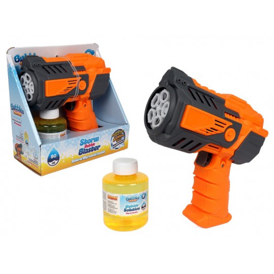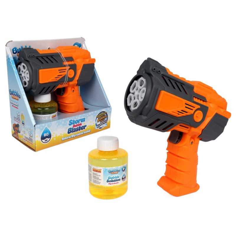Kompaktowa wyrzutnia baniek to pomysł na ekstremalnie dobrą zabawę, nawet na niewielkiej przestrzeni! Poza wyrzutnią, w zestawie znajduje się buteleczka z płynem, o pojemności 80ml, którą należy umieścić w wyrzutni. Po zasileniu zabawki bateriami, będzie ona gotowa do działania. Naciśnij na spust i na własne oczy przekonaj się jak wygląda bąbelkowa magia! Z wyrzutni należy korzystać na świeżym powietrzu. Produkt przeznaczony jest dla dzieci od 3 roku życia.