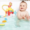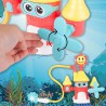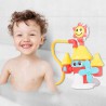 Wejdź do królestwa wodnej zabawy i odkryj wszystkie jego niespodzianki! Ten kolorowy zamek umożliwia zabawę aż na 4 różne sposoby, a to za sprawą dołączonych do zestawu końcówek, które można zamieniać ze sobą miejscami. Każda z końcówek tryska wodą w inny sposób. Znajdziemy tu uśmiechnięte słoneczko, wiatraczek oraz dwie końcówki prysznicowe, krótszą i dłuższą, z wężykiem. Wszystko co musisz zrobić to umieścić zabawkę w wodzie, aby była zanurzona na głębokość ok. 6cm i nacisnąć przycisk, znajdujący się na szczycie największej wieży. Przekonaj się jak wesoła może być kąpiel!