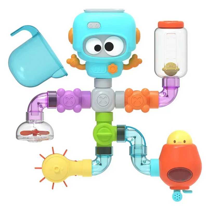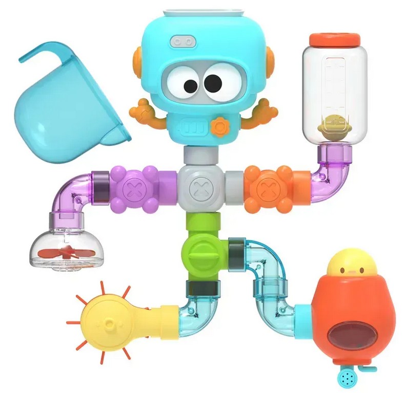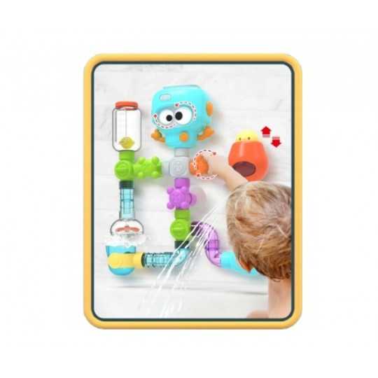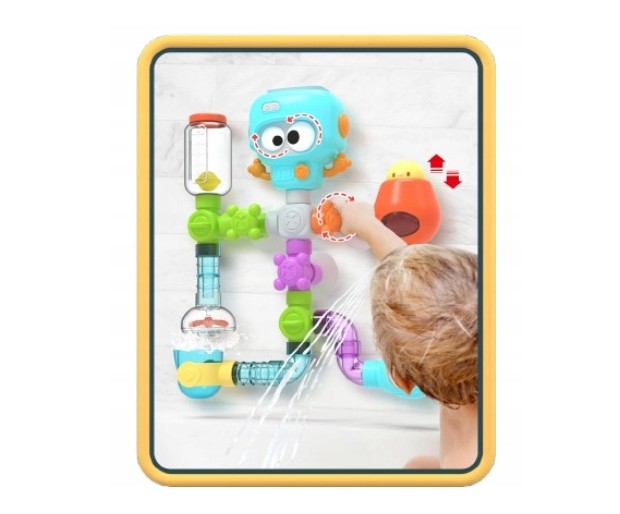 Zestaw składa się z 21 kolorowych części, które maluch może swobodnie łączyć i układać, tworząc własne wodne konstrukcje. Dzięki temu zabawa jest nie tylko pełna radości, ale też rozwija logiczne myślenie, zdolności manualne i kreatywność.