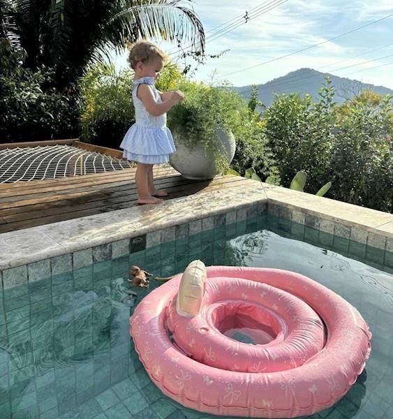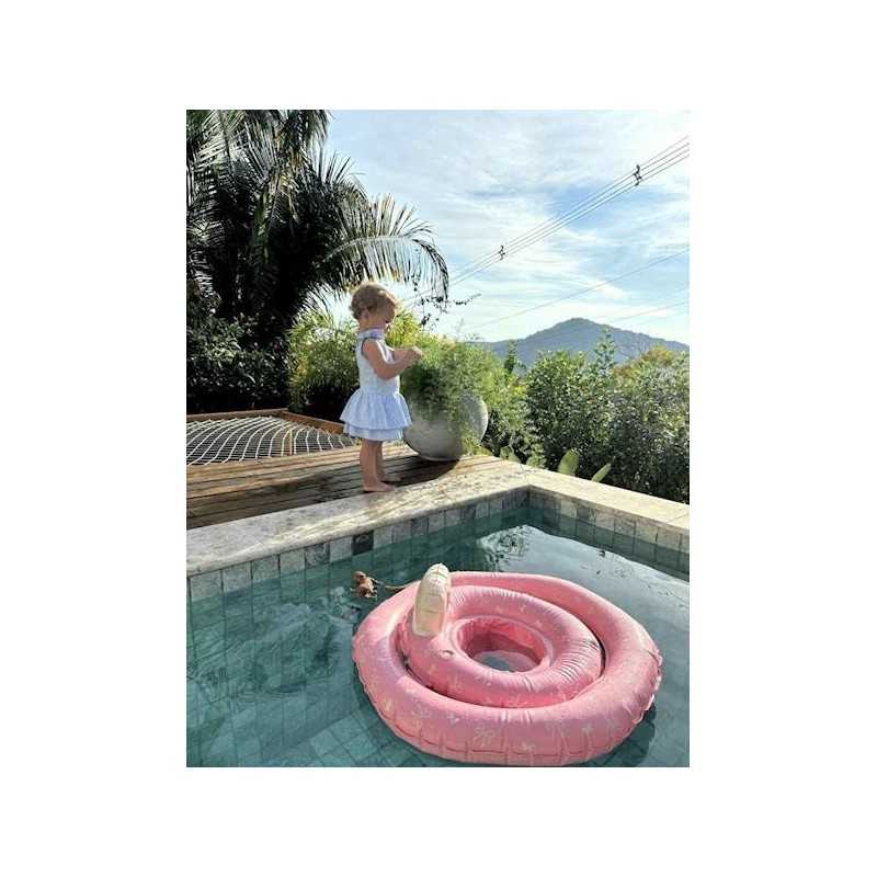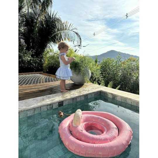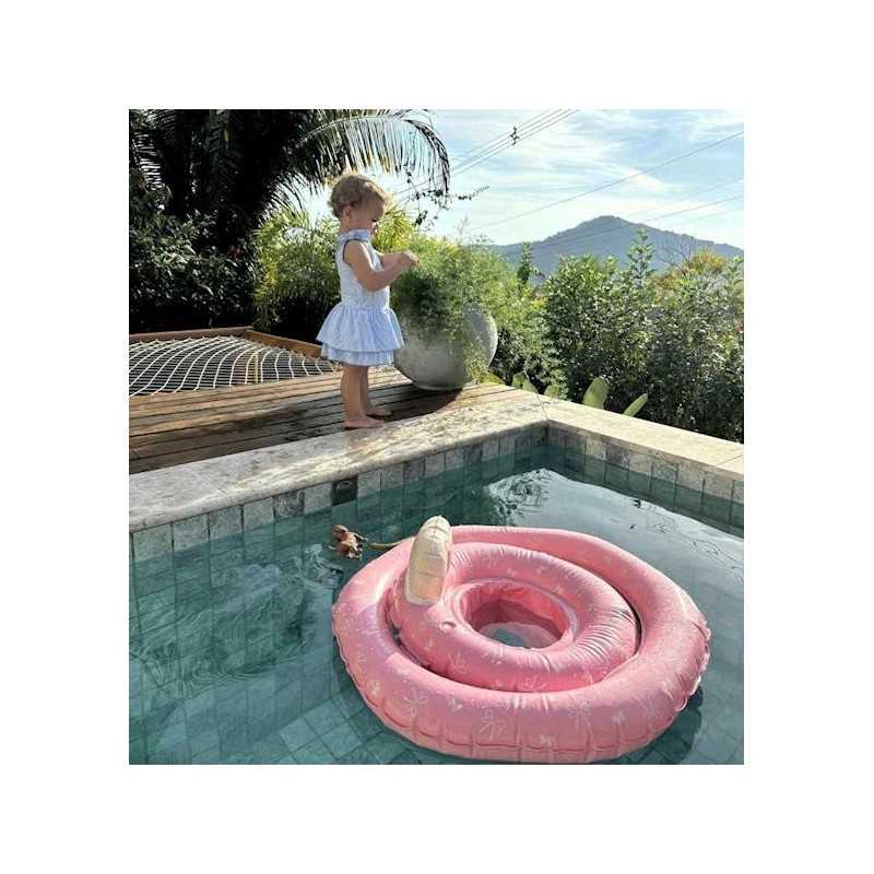 Koło treningowe do pływania Baby Butterfly&Bow rose z siedziskiem średnica 50 cm marki Vanilla Copenhagen Wysokiej jakości koło do pływania i kąpieli dla niemowląt z praktycznym siedziskiem wewnątrz i oparciem. Nadmuchiwane podwójne koło z kroczkiem pomaga dziecku czuć się bezpiecznie w wodzie. Stymuluje naukę i rozwój, pozwala zachować dziecku równowagę w wodzie i cieszyć się zabawą. Jest antypoślizgowe i bezpieczne. Koło w kolorze różowym w urocze motylki i kokardki, które pomagają stymulować zainteresowanie dziecka wodą i zabawą. Koło do kąpieli może być używane na basenie, na plaży lub w brodziku w ogrodzie. Podwójne komory zapewniają dodatkową stabilność i bezpieczeństwo, dzięki czemu możesz cieszyć się każdą chwilą pluskania się z dzieckiem.