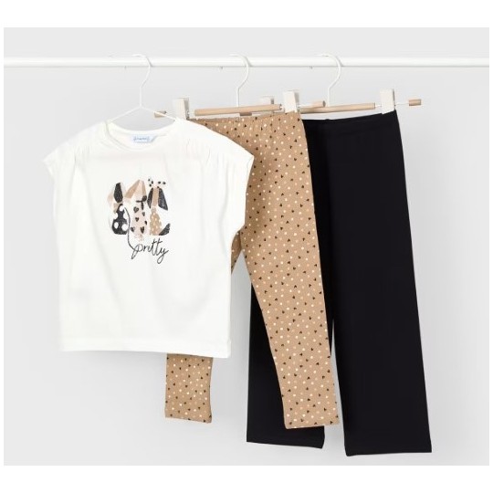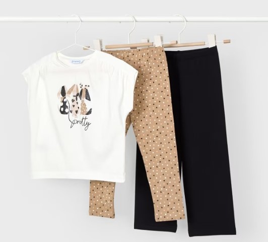 To coś więcej niż ubranie – to kompletne rozwiązanie stylistyczne na każdą okazję. Zestaw składa się z praktycznej bluzy, uroczej koszulki z motywem piesków oraz idealnie dopasowanych legginsów. Elementy te można nosić razem, tworząc harmonijną całość, lub dowolnie łączyć z innymi częściami garderoby. To idealny strój do przedszkola, na plac zabaw czy rodzinny spacer, który zapewni Twojemu dziecku świetny wygląd i niczym nieskrępowaną swobodę.