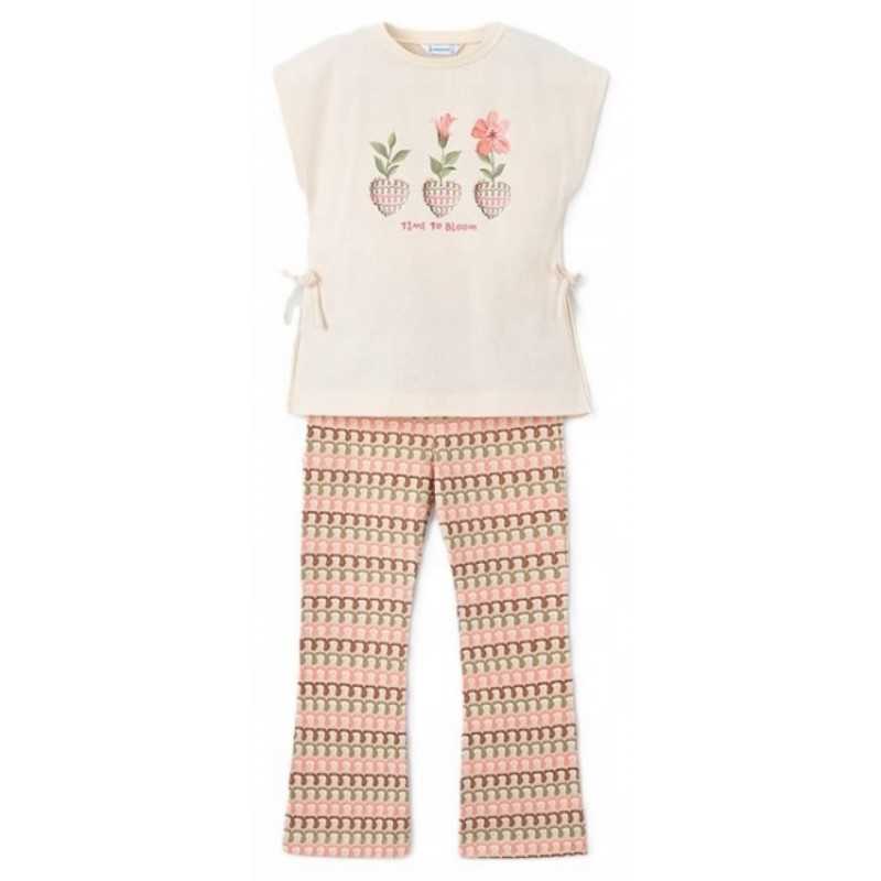 Mayoral 3728.059 Komplet dziewczęcy bawełniany z legginsami beżowy