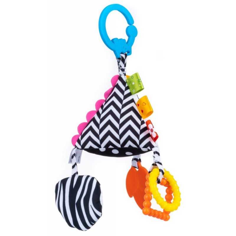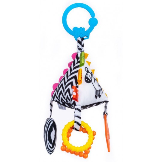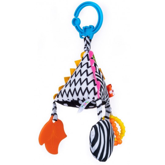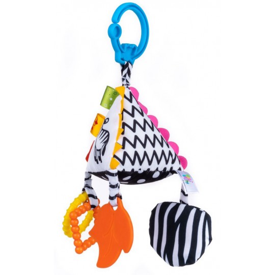 W pluszakowym świecie nie może zabraknąć też nauki. Z zawieszką Piramidka Sensory, Luzaki mogą odkrywać różne faktury materiałów i podziwiać kontrastowe wzory. Zabawkę zdobią kolorowe gryzaczki oraz praktyczna klamra, która pozwala przymocować zawieszkę w dowolnym miejscu. Zabawka przeznaczona dla dzieci od dnia narodzin.