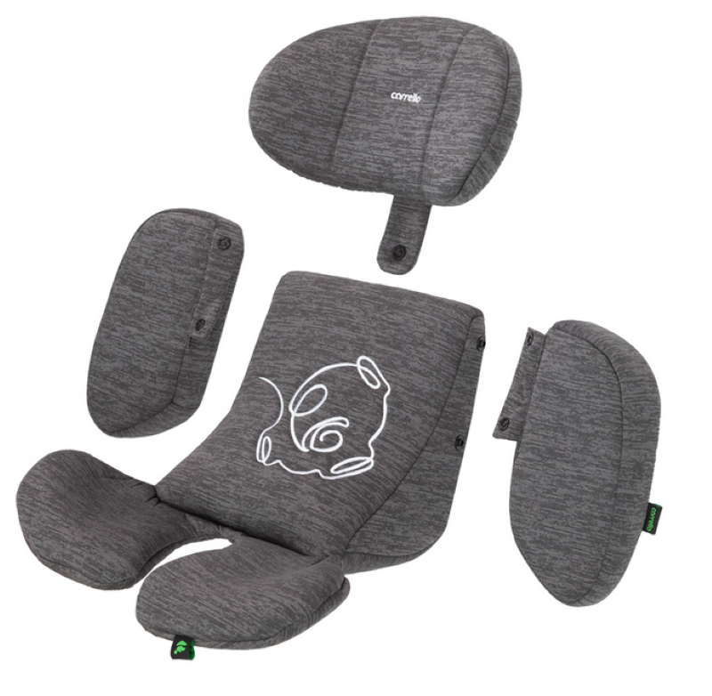 Mały zagłówek i anatomiczna wkładka są wykonane z materiałów Memory Foam, które dopasowują się do anatomicznego kształtu ciała dziecka.