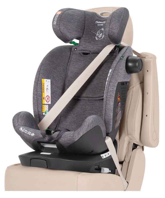 Regulowany zagłówek ma 14 pozycji, co pozwala na dostosowanie fotelika do wzrostu dziecka. Fotelik samochodowy jest wyposażony w pasy bezpieczeństwa i niezawodną 5-punktową klamrę IMMI120 CHILD BUCKLE z zielonym wskaźnikiem. Klamra została przetestowana pod kątem żywotności ponad 50 000 cykli.Gdy dziecko osiągnie wzrost 100 cm lub więcej, fotelik jest instalowany w samochodzie w pozycji "przodem do kierunku jazdy" za pomocą mocowania ISOFIX i standardowego pasa samochodowego.