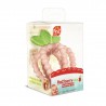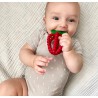 Gryzaczek wykonany z bezpiecznego silikonu, którego powierzchnia została tak zaprojektowana, by ukoić obolałe dziąsła dziecka podczas ząbkowania. Kształtem przypomina malinę z listkami.