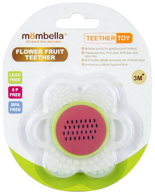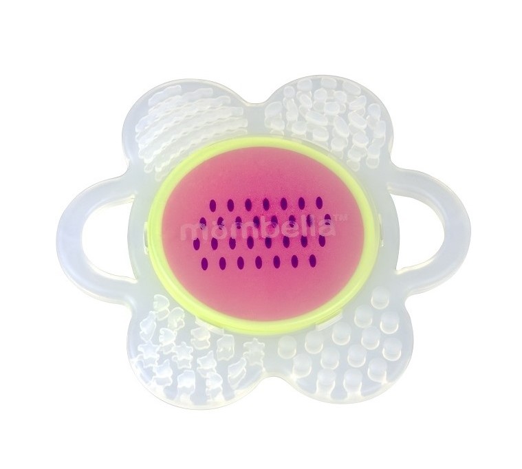Miękki, przeźroczysty gryzak w kształcie kwiatka z soczystym owocem wewnątrz, został zaprojektowany z myślą o najmłodszych dzieciach. Cztery różnorodne tekstury masują delikatne dziąsełka i łagodzą ból podczas ząbkowania. Wyprofilowany kształt i odpowiedni rozmiar umożliwają dziecku chwytanie. Ciekawy kształt gryzaka i kolorystyka zachęcą Malucha do zabawy. Jest bezpieczny i łatwy w gryzieniu nawet po ochłodzeniu. Można używać go w zmywarce, mikrofalówce, a także zamrażarce.