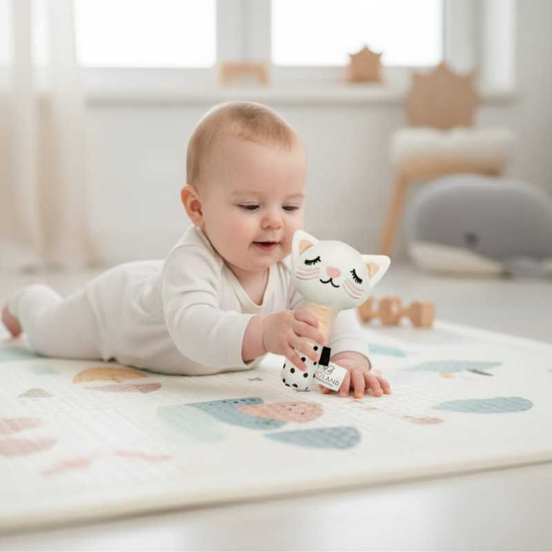 Pierwsze Dźwięki i Radość Odkrywania! Szukasz pierwszej zabawki, która rozbudzi ciekawość słuchową i manualną Twojego maluszka? Urocza Kotka Piszczałka od BOCIOLAND to idealny wybór! Zaprojektowana z myślą o małych rączkach i wrażliwych zmysłach, ta mięciutka zabawka uczy dziecko związku przyczynowo-skutkowego, nagradzając chwyt wesołym dźwiękiem.