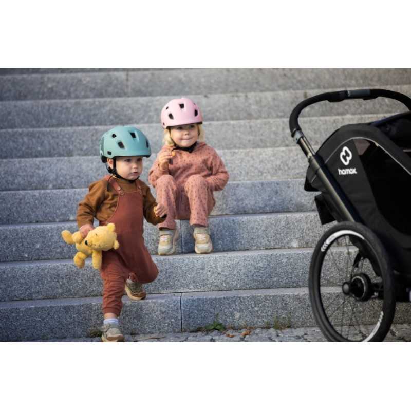 Hamax Thundercap dla młodszych rowerzystów ma nowoczesny design z ukształtowanymi otworami wentylacyjnymi, modnymi kolorami i wygodnym zapięciem magnetycznym. Łatwo się je zapina i odpina, nawet w rękawiczkach, więc nawet najmłodsi kierowcy radzą sobie z nim samodzielnie. Bezpieczny i solidny. Kask wykonany jest w technologii in-mold i posiada pełną skorupę ochronną, dzięki czemu jest bardzo bezpieczny i wytrzymały. Skośne otwory wentylacyjne nadają mu nowoczesny wygląd, a jednocześnie zapewniają dobrą cyrkulację powietrza wewnątrz kasku. Pasek na szyję wyposażony jest w regulowany system PSS5, który zapewnia ścisłe i wygodne dopasowanie kasku.