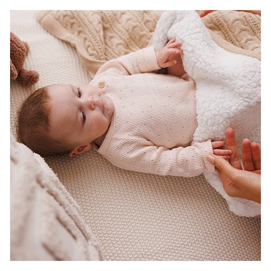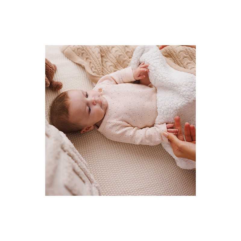 - WYJĄTKOWO CIEPŁY Dwustronne wykonanie, z miękkiej dzianiny i z puszystej sherpy, doskonale chroni przed wiatrem i zimnem. Gruby kocyk z sherpą dla niemowlaka stworzyliśmy z myślą o jesiennych chłodach i zimowych mrozach.