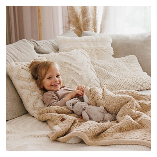 - UNIWERSALNY Nasz koc z barankiem dla dzieci o wymiarze 75 × 100 cm wykorzystasz w domu, na spacerach i w podróży – do otulenia w łóżeczku, wózku i foteliku. Zapewni maleństwu ciepło w każdej sytuacji.
