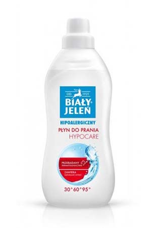 Biały Jeleń HYPOCARE to hipoalergiczny płyn do prania tkanin białych i kolorowych w temperaturach 30°C, 40°C, 60°C i 95°C w pralkach automatycznych oraz do prania ręcznego. Powstał z myślą o osobach z różnego rodzaju alergiami i problemami skórnymi. Aktywne składniki płynu efektywnie usuwają plamy z tkanin bawełnianych, lnianych i syntetycznych. Płyn do prania Biały Jeleń dzięki zawartości naturalnego mydła jest łagodny dla skóry i tkanin.