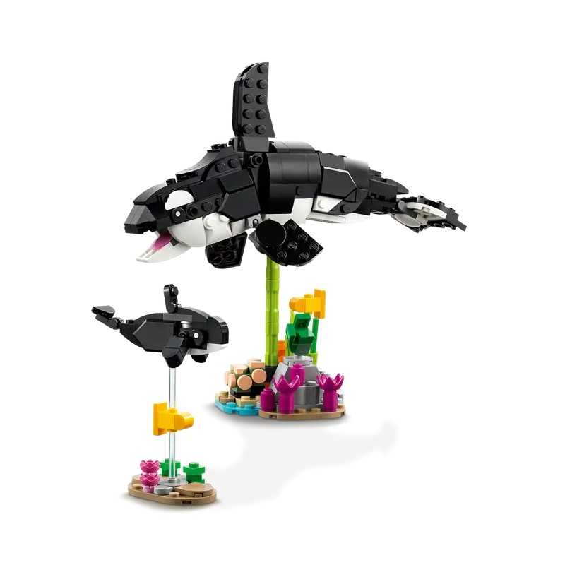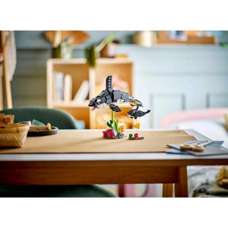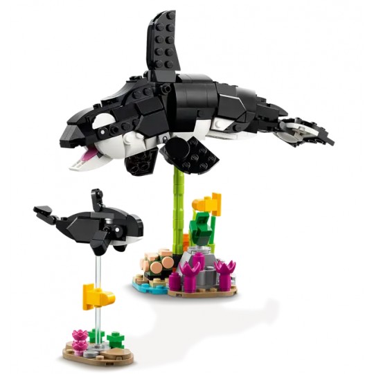- Modele do zabawy i ozdoby - po ukończonej zabawie można umieścić figurki zwierząt LEGO na półce lub stoliku nocnym. Rodzinę orek można ustawić na dwóch przezroczystych podstawkach