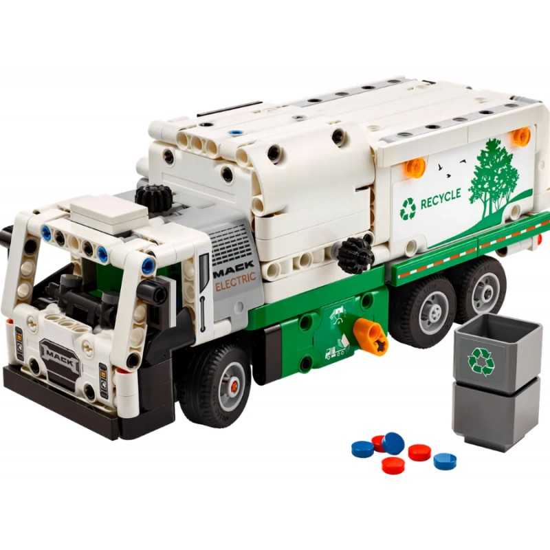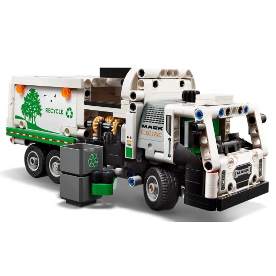 - Wymiary – Kreatywny zestaw LEGO Śmieciarka Mack LR Electric składa się z 503 elementów, a pojazd ma wymiary 9 cm wysokości x 23 cm długości x 8 cm szerokości