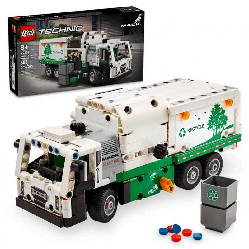 Model do składania słynnej ciężarówki Mack teraz w wersji mini! Chłopcy i dziewczynki od lat 8 mogą cieszyć się zabawą zestawem LEGO Technic Śmieciarka Mack LR Electric (42167), rozwijając swoją wyobraźnię. Dzięki tej praktycznej zabawce dzieci mogą dowiedzieć się więcej o utrzymywaniu miasta w czystości. Inspirowana elektryczną śmieciarką zabawka wiernie odtwarza funkcje oryginału. Drzwi zestawu konstrukcyjnego otwierają się, a przekładnia umożliwia sterowanie pojazdem.Model elektrycznej ciężarówki posiada funkcję bocznego załadunku, umożliwiającą chwytanie, podnoszenie i opróżnianie śmieci. Zestaw ze śmieciarką dla dzieci zawiera również kosze z zawartością, co pozwala na jeszcze bardziej kreatywną zabawę i odgrywanie scenek. Zestawy do budowania LEGO Technic, wyposażone w realistyczne funkcje, wprowadzają dzieci w świat inżynierii. Modele te są doskonałym pomysłem na prezent urodzinowy dla dzieci czy podarunek na inne okazje.