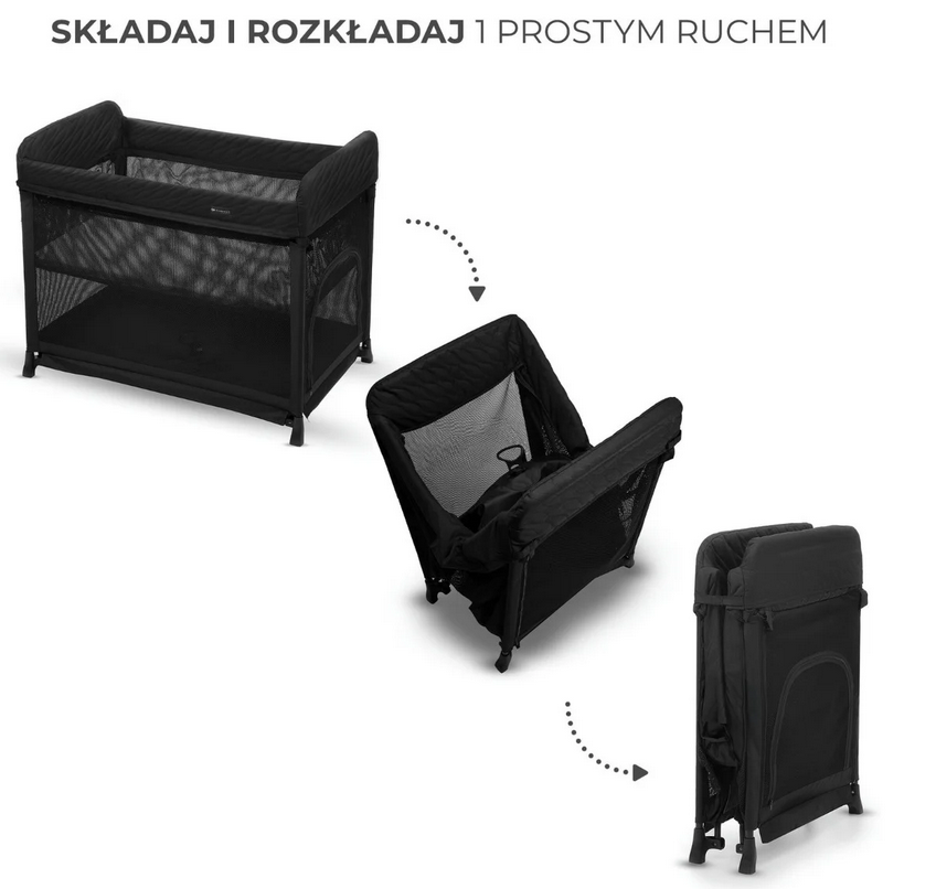 Składane łóżeczko dla aktywnych rodzin, które uwielbiają podróże i spontaniczne wyjazdy. Innowacyjna konstrukcja pozwala na błyskawiczne składanie i rozkładanie jednym prostym ruchem, co sprawia, że możesz zabrać je wszędzie, gdzie tylko zechcesz. Dzięki podwieszanemu dnu, Twoje dziecko będzie miało komfortowy sen od pierwszych dni życia, a Tobie będzie wygodniej umieszczać Maluszka na materacu. Otwierane wyjście i schowek pod podwieszanym dnem to genialne, wielofunkcyjne rozwiązanie, pozwalające przechowywać akcesoria czy zabawki. Podwieszone dno łóżeczka MOON DREAM zapewnia idealną przestrzeń do snu i odpoczynku dla malucha już od pierwszych dni życia do momentu, w którym nie zacznie samodzielnie się podnosić (do około 6 miesiąca życia). To bardzo wygodne rozwiązanie i ułatwienie dla rodzica, który nie musi się nisko schylać. Otwierany bok łóżeczka to genialne rozwiązanie. Dzieki niemu masz schowek na akcesoria i zabawki dziecka tuż pod podwieszanym materacem. Gdy dziecko urośnie, a materac opuścisz, dolna przestrzeń łóżeczka staje się idealnym miejscem do snu, zabawy i odpoczynku, do której malec ma swoje prywatne wejście.