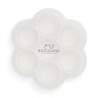 Forma składa się z 7 okrągłych komór o pojemności ok. 65 ml każda. To idealna ilość zupki, musu owocowego czy przecieru warzywnego dla dziecka rozpoczynającego przygodę z jedzeniem (ok. 6 miesiąca). Nie musisz martwić się marnowaniem jedzenia – wyciągasz tyle "płatków" kwiatka, ile akurat potrzebujesz.