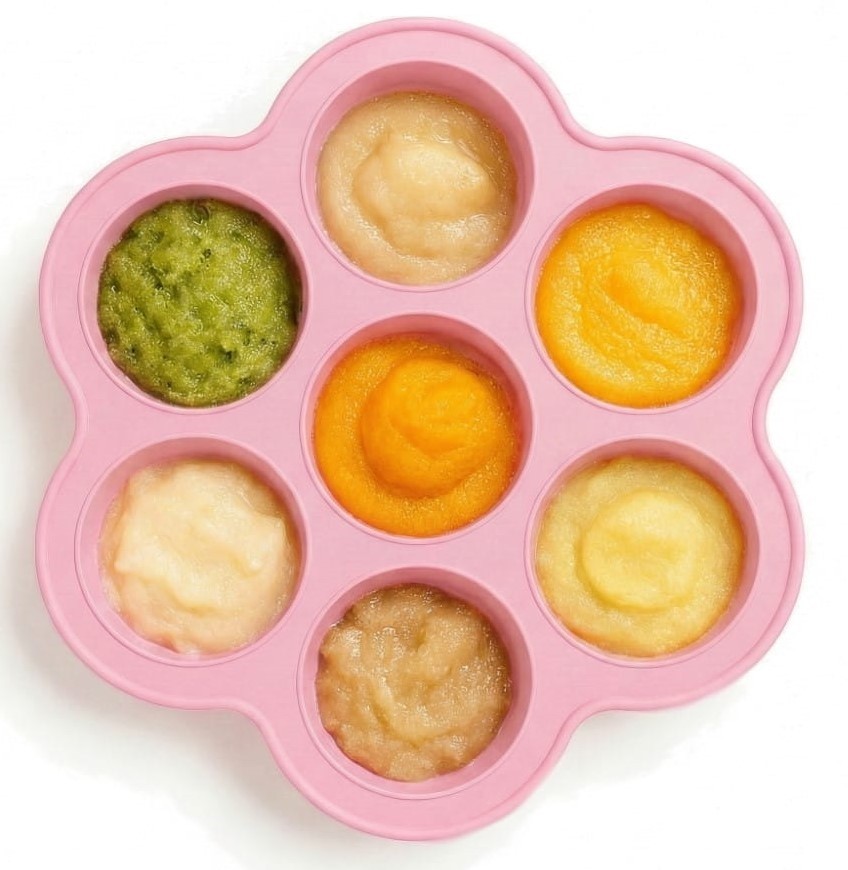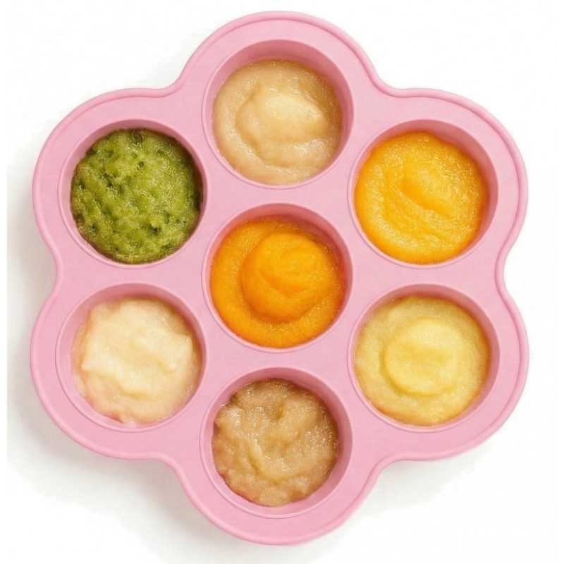 Bocioland Silikonowa Forma do Mrożenia Posiłków Kwiatek z Pokrywką RÓŻOWA