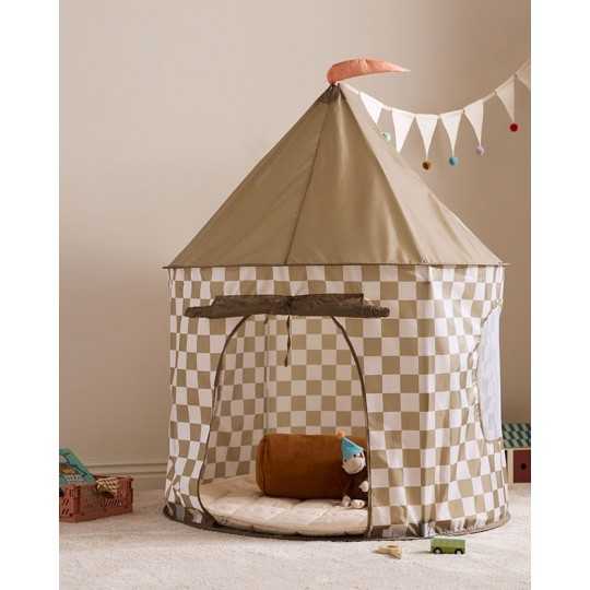 Kids Concept - Namiot do zabawy w kratę Domek Check Khaki