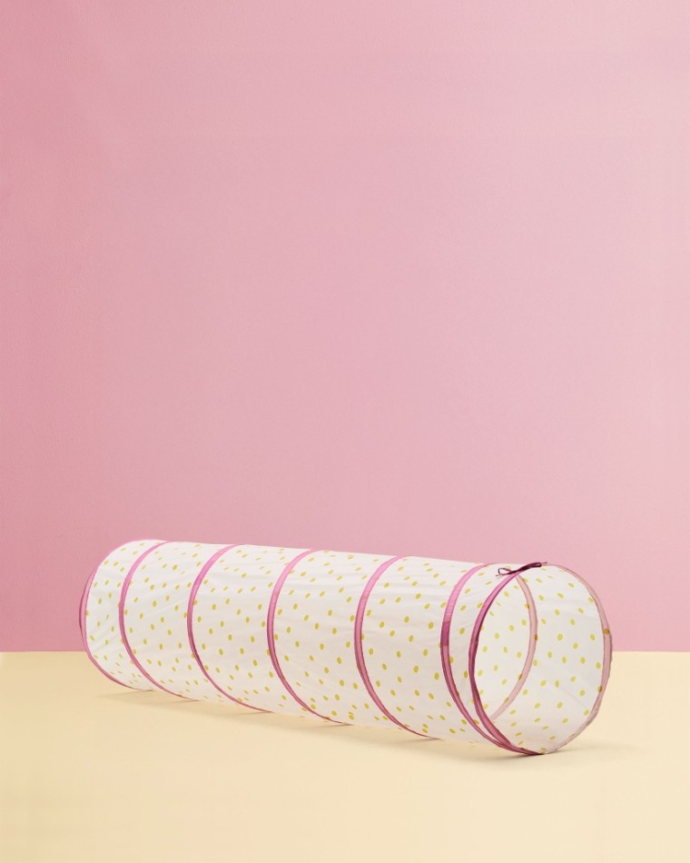 Tunel do zabawy może być używany samodzielnie lub w połączeniu z namiotem pop-up, tworząc radosną, dziecięcą kryjówkę. Dziecko może się przez niego czołgać, turlać piłkę z jednego końca na drugi albo po prostu położyć się w środku na chwilę spokojnej zabawy i wyciszenia.  Tunel rozkłada się jednym ruchem i po zakończonej zabawie składa się na płasko. W zestawie znajduje się praktyczna torba do przenoszenia, która ułatwia przechowywanie lub zabranie tunelu ze sobą. Produkt przeznaczony do użytku wewnątrz pomieszczeń, na gładkiej powierzchni. Odpowiedni dla dzieci od 2. roku życia.
