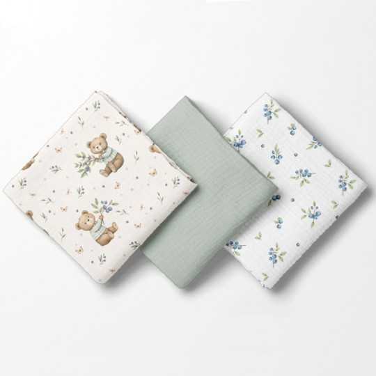Wyjątkowy 3-pak Pieluszek Muślinowych – Delikatność w pięknym wydaniu