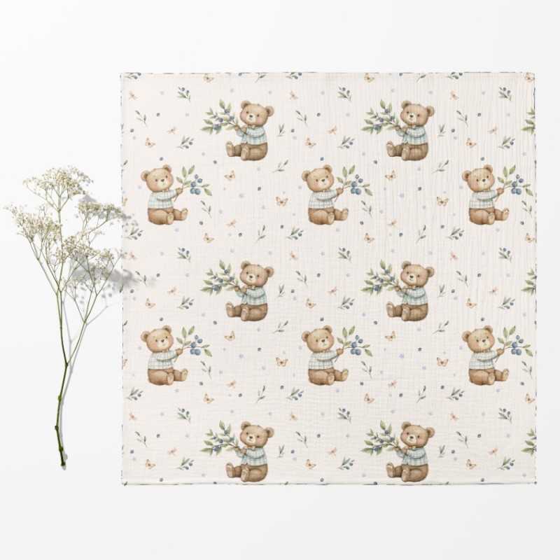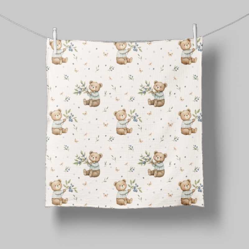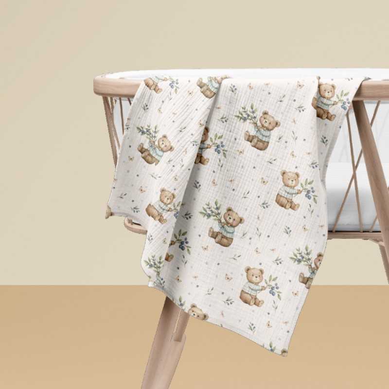 - Skład: 100% wysokogatunkowa bawełna muślinowa.