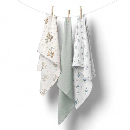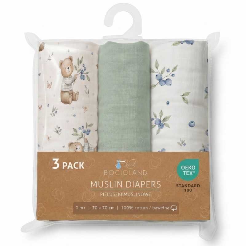 BOCIOLAND PIELUSZKI MUŚLINOWE 70x70cm 3pack. ZIELONY