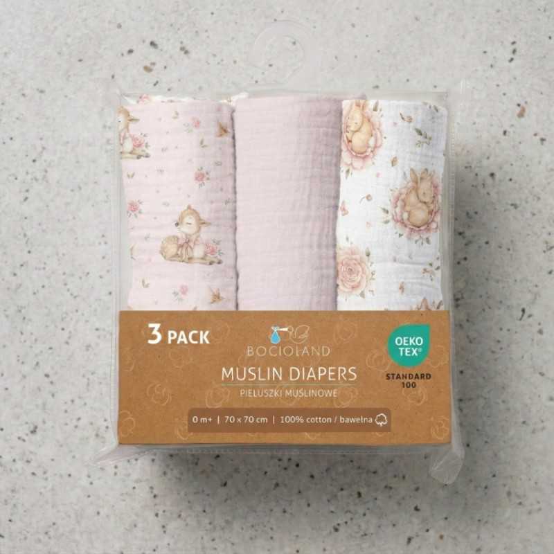 BOCIOLAND PIELUSZKI MUŚLINOWE 70x70cm 3pack. RÓŻ