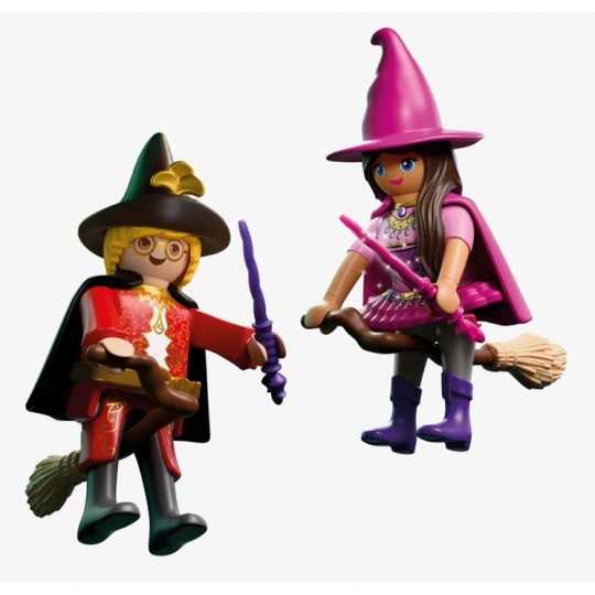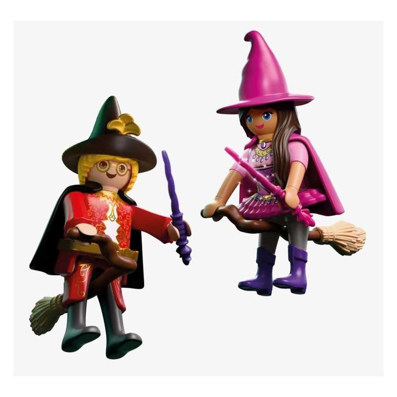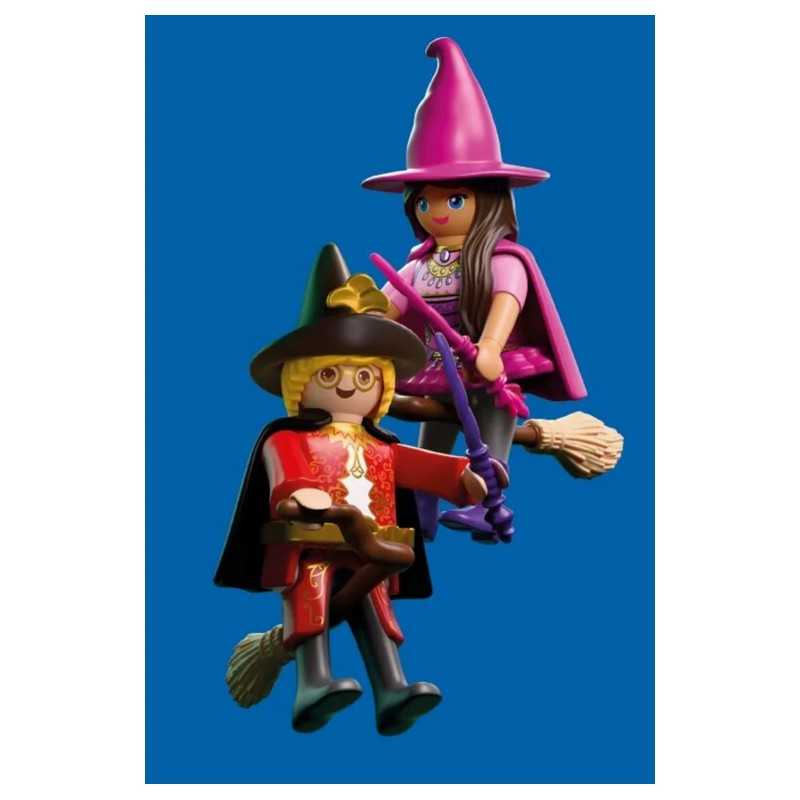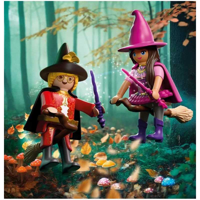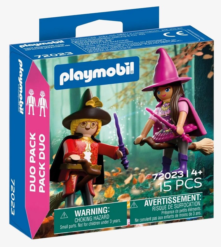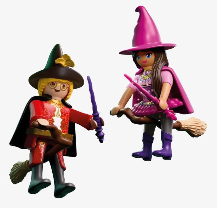 PLAYMOBIL special PLUS to kolekcja unikatowych figurek z tematycznymi akcesoriami. Figurki stanowią uzupełnienie zestawów Playmobil i dają możliwość tworzenia nowych wątków podczas zabawy. DuoPack CZAROWNICA I CZARODZIEJ to magiczny zestaw, który przenosi dzieci do świata czarów, zaklęć i niezwykłych przygód. Dwie fantastyczne postacie unoszą się nad tajemniczym krajobrazem, gotowe do rzucania zaklęć i odkrywania sekretów zaczarowanej krainy. To idealna propozycja dla dzieci, które uwielbiają światy fantasy i tworzenie własnych opowieści. Dzięki miotłom i przezroczystej podstawce, czarownica może wyglądać jakby naprawdę lewitowała w powietrzu. Efekt unoszenia się dodaje zabawie dynamiki i sprawia, że każda scena nabiera baśniowego charakteru! Dziecko może ustawiać postacie w różnych pozach, odtwarzać magiczne pojedynki lub spokojne loty nad lasem, rozwijając przy tym wyobraźnię i zdolności narracyjne. Ten niewielki, ale bardzo klimatyczny dwupak Playmobil, wnosi do zabawy atmosferę tajemnicy, fantazji i nieograniczonej wyobraźni!