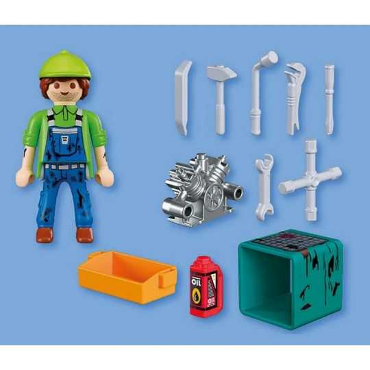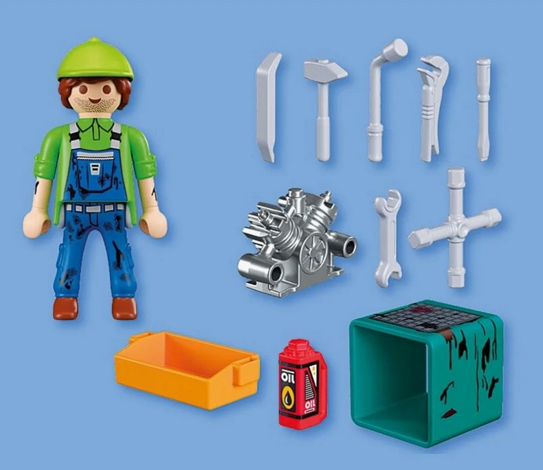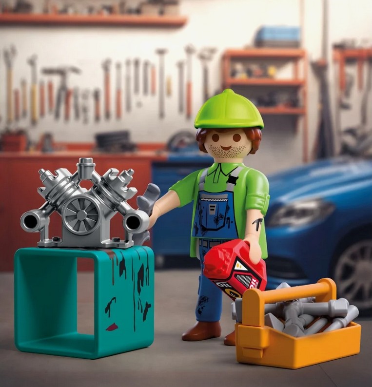 MECHANIK to tematyczny zestaw dla chłopców od czwartego roku życia, który przenosi zabawę do świata warsztatu i napraw technicznych. Postać mechanika gotowego do kolejnego zlecenia pozwala dziecku wcielić się w rolę fachowca, który dba o sprawność maszyn i silników. Zestaw zachęca do odgrywania realistycznych scenek z warsztatu. Stół roboczy, blok silnika oraz bogaty zestaw narzędzi umożliwiają symulowanie napraw, regulacji i pracy z częściami. Skrzynka narzędziowa pomaga utrzymać porządek, a dodatkowe akcesoria sprawiają, że każda naprawa może przebiegać inaczej. Zabawa rozwija zdolności manualne, uczy logicznego myślenia i planowania kolejnych działań. Ta kompaktowa, ale bardzo angażująca propozycja, pobudza dziecięcą wyobraźnię i pozwala dziecku tworzyć własne historie związane z codzienną pracą mechanika.