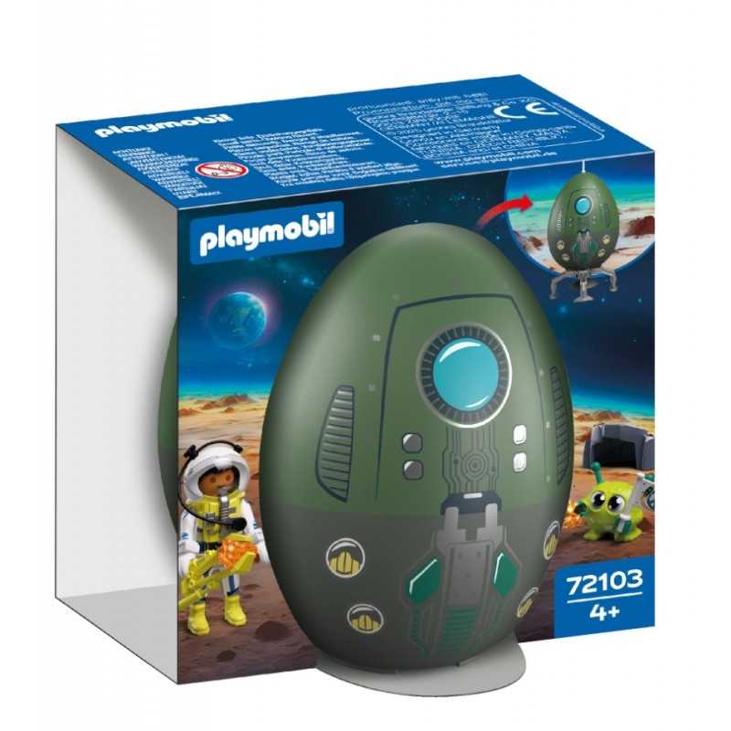 Nowe kreatywne jajka PLAYMOBIL – teraz jeszcze więcej zabawy! W każdym kolorowym jajku kryje się wiele niespodzianek: dwie figurki, mnóstwo akcesoriów i małą scenkę do zbudowania bezpośrednio z dwóch połówek jajka. Wystarczy rozpakować, złożyć i zacząć zabawę! Przygody w kosmosie: Na odległej planecie badacz kosmosu spotyka przyjaznego kosmitę wymachującego białą flagą pokoju. Razem podziwiają rzadki, świecący kryształ – a kosmita życzliwie dzieli się nim ze swoim nowym ludzkim przyjacielem. Kreatywne jajko można złożyć i dodatkowo wykorzystać jako skarbonkę – idealne do oszczędzania pieniędzy na kolejną przygodę!