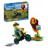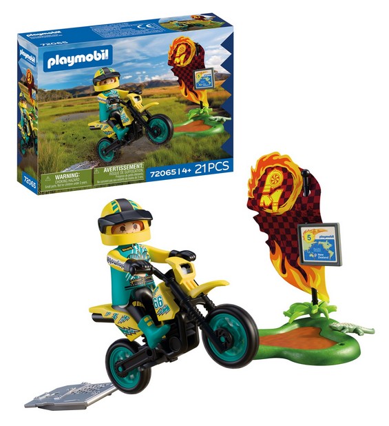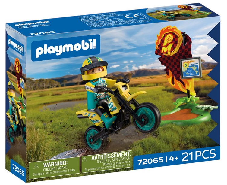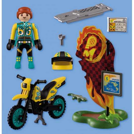 PLAYMOBIL Cars TERENOWY MOTOCYKL zaprasza na kolejny ekscytujący etap rajdu Ring of Fire, który tym razem prowadzi przez mokradła Nowej Zelandii. Dzieciaki spragnione rajdowych emocji będą się dobrze bawić składając motor z klocków, a potem tworząc motoryzacyjne scenariusze zabaw. Błoto, kałuże i nierówna nawierzchnia sprawiają, że trasa wyścigu staje się prawdziwym wyzwaniem dla każdego motocyklisty. Zawodniczka przygotowuje się do startu, sprawdza mapę rajdu i rusza na tor, gdzie liczą się odwaga, precyzja oraz doskonała kontrola nad maszyną. Motocykl terenowy został stworzony do jazdy w trudnych warunkach. Dzięki specjalnej rampie zawodniczka może rozpędzić się i wykonać skok nad błotnistą kałużą! Po zakończonych zawodach motocykl można stabilnie zaparkować na rozkładanej stopce. Na trasie znajdują się także elementy scenografii - rośliny oraz niewielka jaszczurka, która obserwuje zmagania motocyklistki z pobocza. Odgrywaj dynamiczne sceny rajdowe i twórz własne historie z ekstremalnych wyścigów terenowych! Zestaw Playmobil Cars to fantastyczna propozycja dla dzieci, które lubią szybkie pojazdy i sportową rywalizację i przygodę. Pojazd będzie czadowym prezentem dla każdego chłopca.