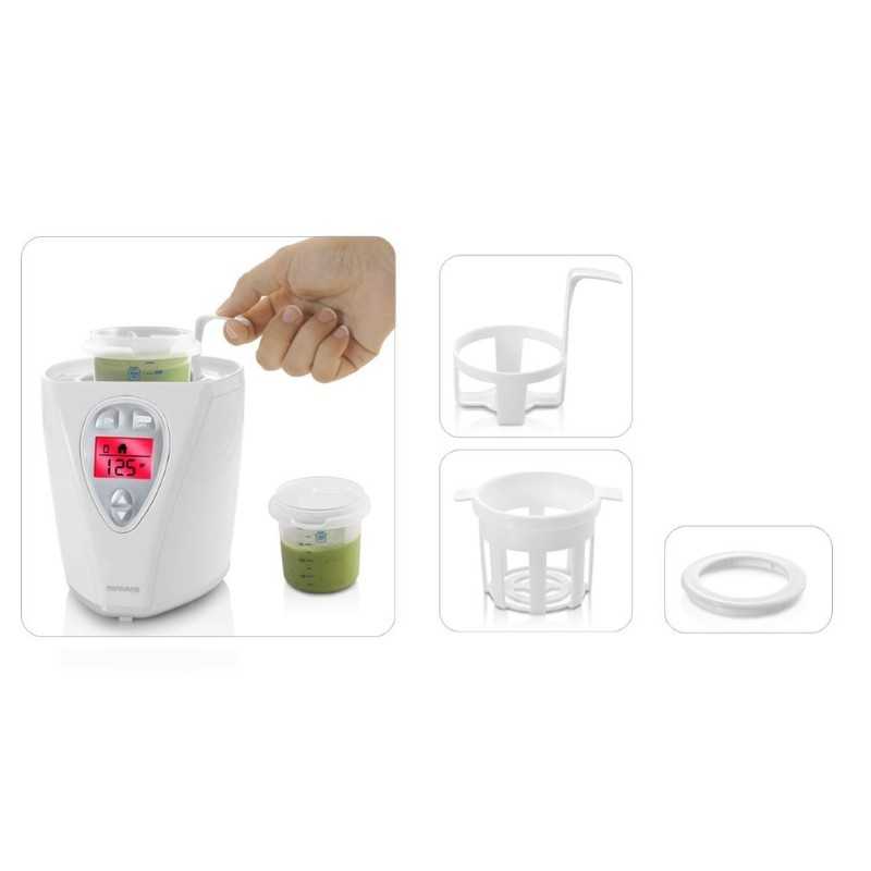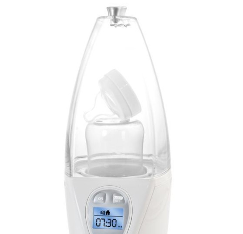 W podgrzewaczu można jednocześnie przeprowadzić proces sterylizacji zarówno butelki jak i wszystkich jej akcesoriów.