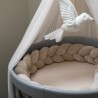 - Warkocz został wykonany z wysokiej jakości weluru, co nadaje mu miękkość i delikatność. Ten luksusowy materiał nie tylko dodaje elegancji, ale również stanowi przyjemne dla dotyku wykończenie. Dzięki zastosowaniu weluru warkocz staje się nie tylko funkcjonalnym elementem łóżeczka, ale także estetycznym dodatkiem, który doskonale komponuje się z każdym wystrojem dziecięcego pokoju.