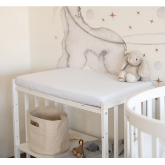 - Bawełniane nieprzemakalne prześcieradło z gumką na przewijak w kolorze białym