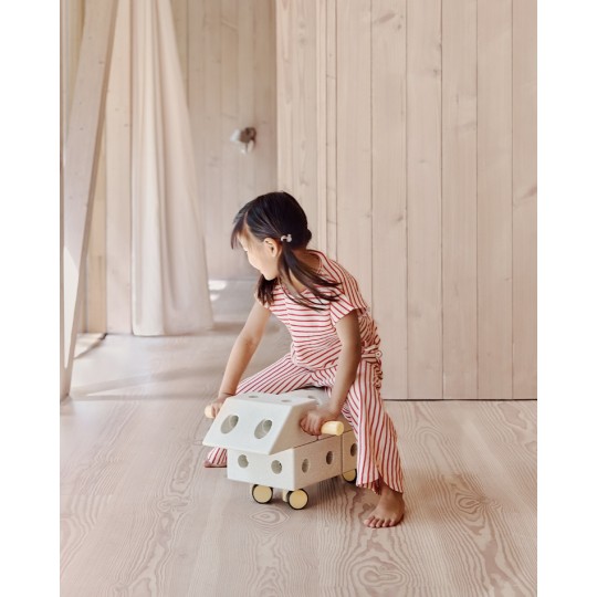 Zachęcamy, aby proces budowy nadzorowała osoba dorosła (zwłaszcza w przypadku jeździków i konstrukcji, na które dziecko może wchodzić). Jeździki zbudowane przy użyciu obrotowych kółek nie są całkowicie stabilne i dlatego należy je traktować jako zabawki równoważne i używać pod nadzorem osoby dorosłej. Po każdej zabawie zaleca się rozłożenie konstrukcji i oddzielenie od siebie elementów, by uniknąć wyrabiania się otworów. Prosimy o zapoznanie się z tymi ważnymi środkami ostrożności: Unikaj zabawy bez nadzoru z łącznikami w przypadku dzieci poniżej 10. miesiąca życia lub dzieci, które nie potrafią samodzielnie siedzieć. Złożone konstrukcje mogą być obciążane do maksymalnie 50 kg; używaj ich w pomieszczeniach na drewnianych lub wykładzinowych podłogach lub podobnych powierzchniach. Nie używaj na zewnątrz ani na pochyłych powierzchniach. Ta zabawka nie jest wyposażona w hamulec. Bezpieczeństwo jest naszym priorytetem, zapewniającym dzieciom bezpieczną i przyjemną zabawę. Wszystkie części produktów przechodzą niezależne testy laboratoryjne, posiadają certyfikat CE i spełniają Europejską Normę Bezpieczeństwa Zabawek (EN71).