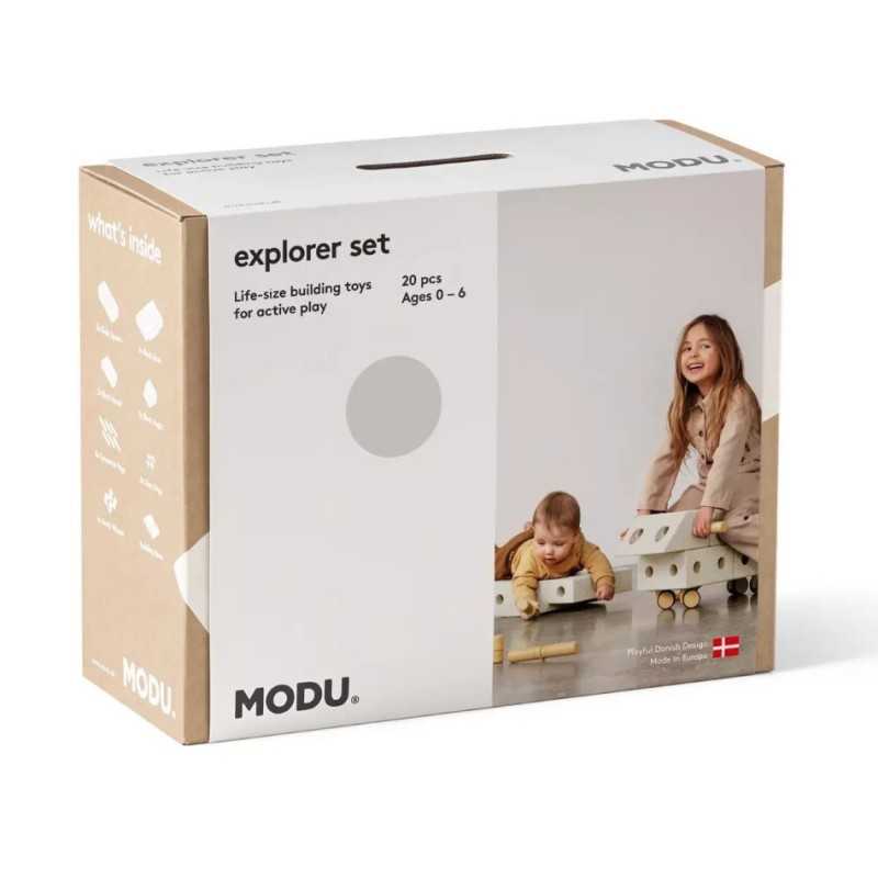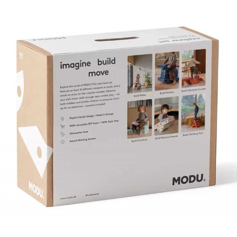 Eksploruj świat MODU! Ten zestaw oferuje co najmniej 15 budowli, a otwartym umysłom gwarantuje nieskończoną ilość kreatywnych kreacji. Rozwiń zdolności motoryczne swojego dziecka otwartą zabawą z MODU. Budujcie zabawne pojazdy, bujane koniki, stwórzcie deskę balansującą albo cokolwiek twórczego podpowie Wam wyobraźnia. Explorer set sprawdzi się w przypadku niemowląt i małych dzieci - wszystkich gotowych na przygodę: w tym rodziców! To średni zestaw, który zapewni Twojemu dziecku godziny zabawy. MODU to wyjątkowa zabawka, która nie tylko pobudza chęć do aktywnej zabawy ale także zachęca do budowania własnych dzieł. Bloki konstrukcyjne zapewniają niekończącą się zabawę dzieciom w każdym wieku. Są doskonałym narzędziem do ćwiczeń i terapii integracji sensorycznej. W przypadku tej zabawki ogranicza nas tylko wyobraźnia. Zabawka MODU ma na celu rozwijanie zdolności motorycznych i zapewnienie dziecku ruchu który jest podstawą jego rozwoju. Jest to niezwykle ważne, ponieważ dzieci lepiej się uczą i bawią gdy są aktywne fizycznie.