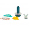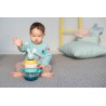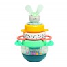 Sympatyczna piramida z 4 kolorowymi pierścieniami i kumplem-króliczkiem na górze